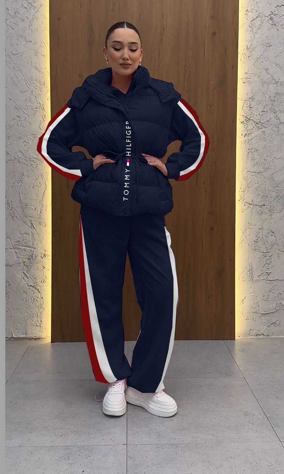 Изберете елегантност и удобство с този дамски сет от три части Tommy Hilfiger, съчетаващ модерна визия и премиум изработка. Моделът включва долница и горница от висококачествен памук с двуконечна вата за мекота и топлина, както и елегантен елек със силиконов пълнеж, осигуряващ допълнителен комфорт в по-хладните дни.