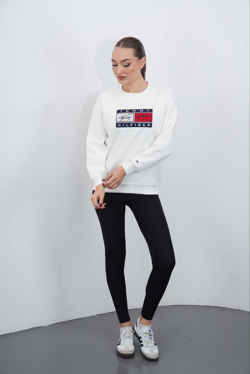 Tommy Hilfiger – Дамска блуза от 100% висококачествен памук с лого от кристали