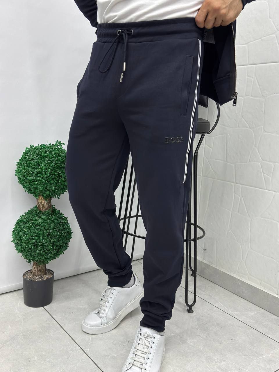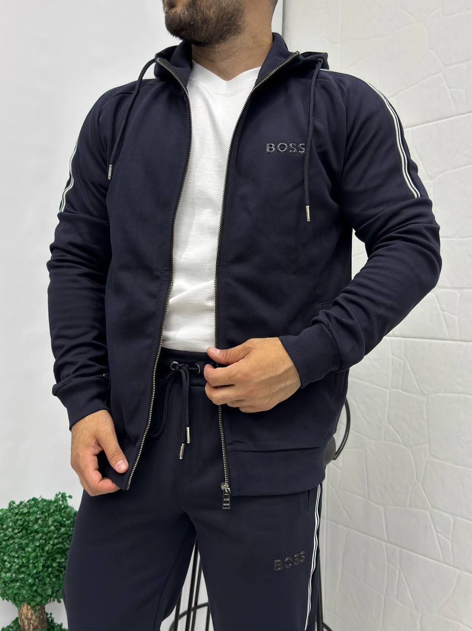 Запознайте се с мъжкия спортен екип Hugo Boss от 100% PAMUK Double Face – изискан баланс между мекота, здравина и модерна визия. Комплектът включва долница с връзки на талията за перфектно прилягане и горница с джобове и качулка за удобство във всяка ситуация. Масивната бродерия с логото на Hugo Boss завършва усещането за престиж и внимание към детайла.