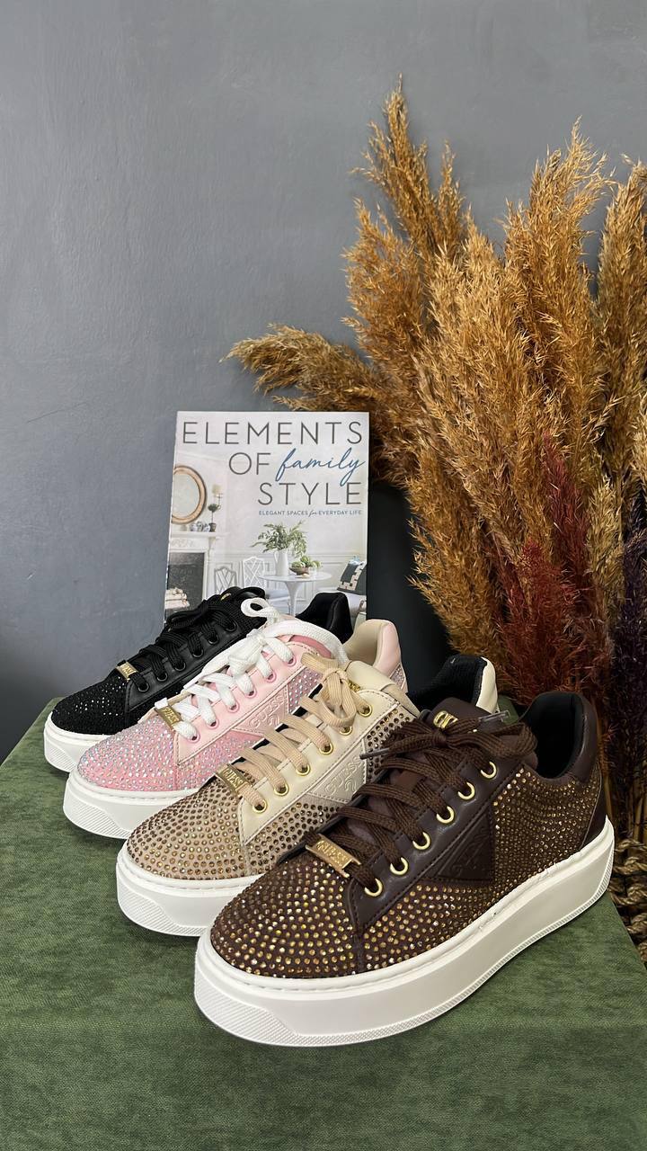 Открийте новото бижу в колекцията на GUESS за сезон 2026 – дамски спортни обувки, които съчетават лукс, модерна визия и безкомпромисен стил. Последният модел на марката впечатлява с изчистен силует, елегантно допълнен от фини, деликатни камъчета, които придават блясък и подчертават женственото излъчване.